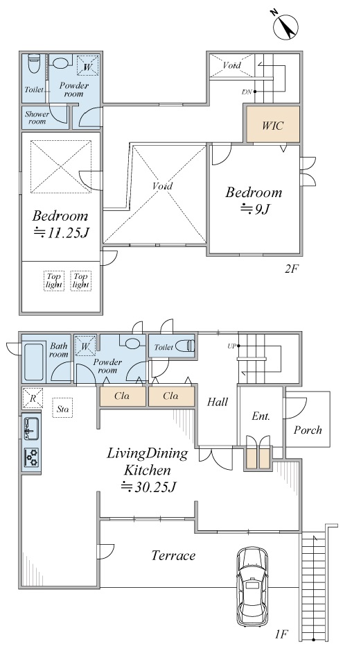 開放感のある吹き抜けのリビング 広々テラスでガーデニングや家庭菜園などが楽しめます トイレ2箇所!2階にはシャワールームもあります♪